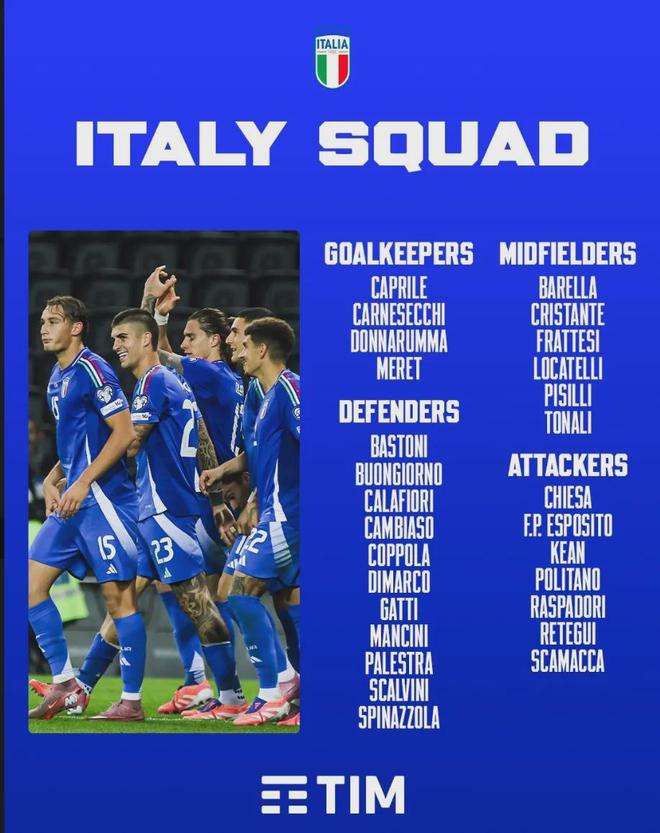 意大利公布了世界杯預(yù)選賽附加賽大名單,卡拉菲奧里入選。