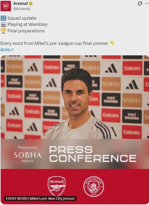 阿爾特塔出席了賽前新聞發(fā)布會(huì),并談到了傷病等問題。